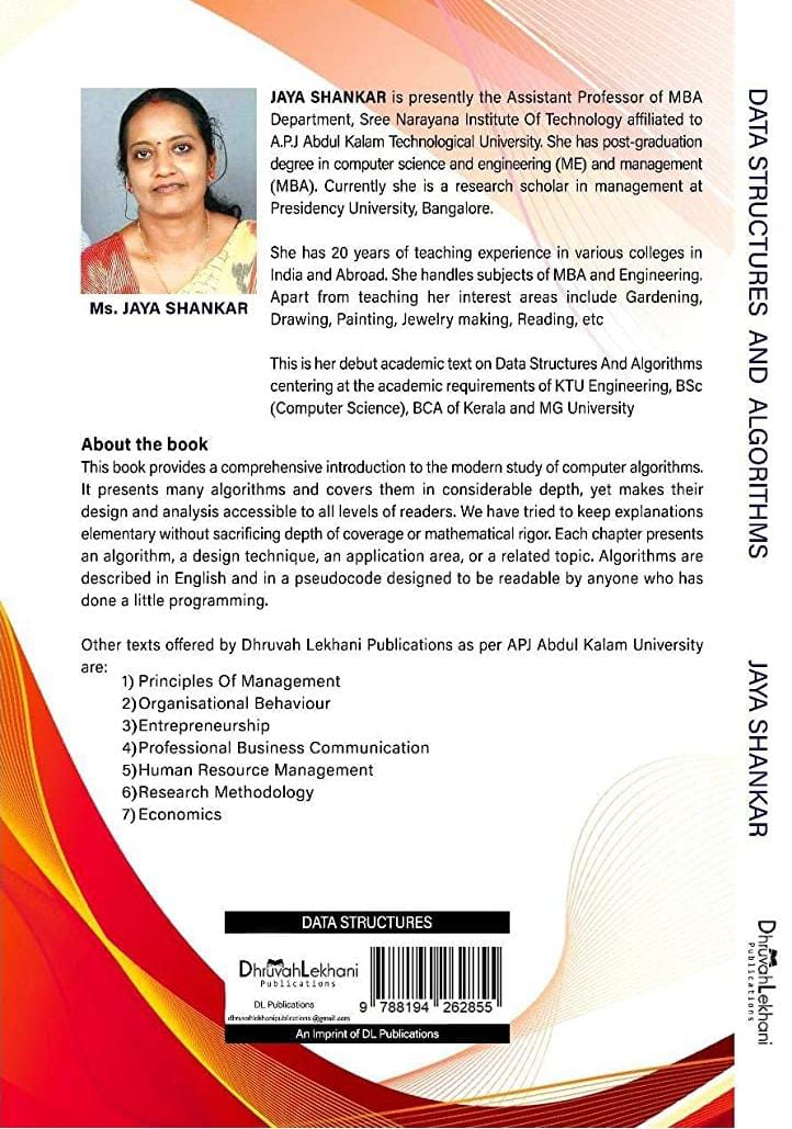 This text Data Structures and Algorithms by Jaya Shankar concentrating at the academic requirements of BSc Computer Science, BCA ,MCA, CS Engineering in Mahatma Gandhi University, Kerala University and Kerala Technological University.